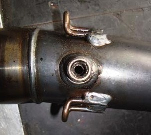 画像のようにCIK公認(OK/KZ)およびX30(2019-)以外のエキゾーストパイプには、排気温度センサ用ボスを溶接して取り付けてください。