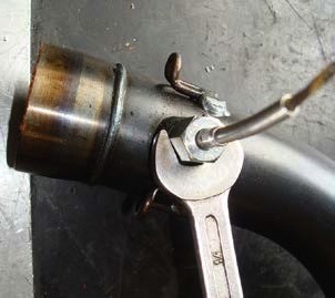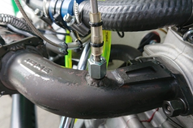 上記は、YAMAHA KTのエキゾーストパイプに、排気温度センサ用ボスを溶接した使用例です。 排気温度計センサ ONLY T12(CIK/FIA公認タイプ)を使用する場合